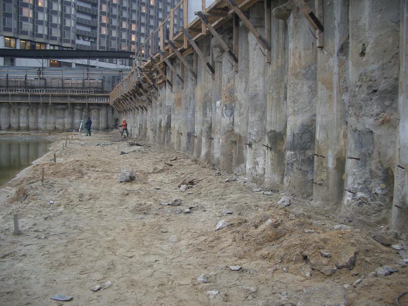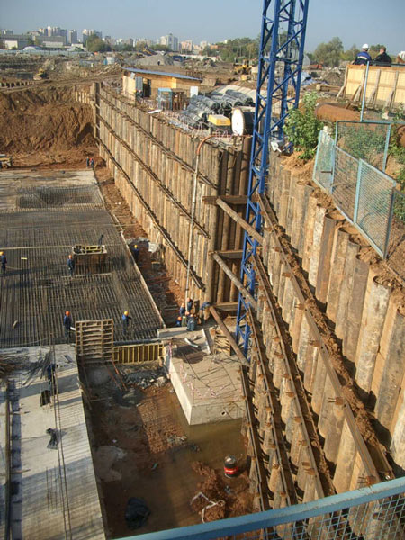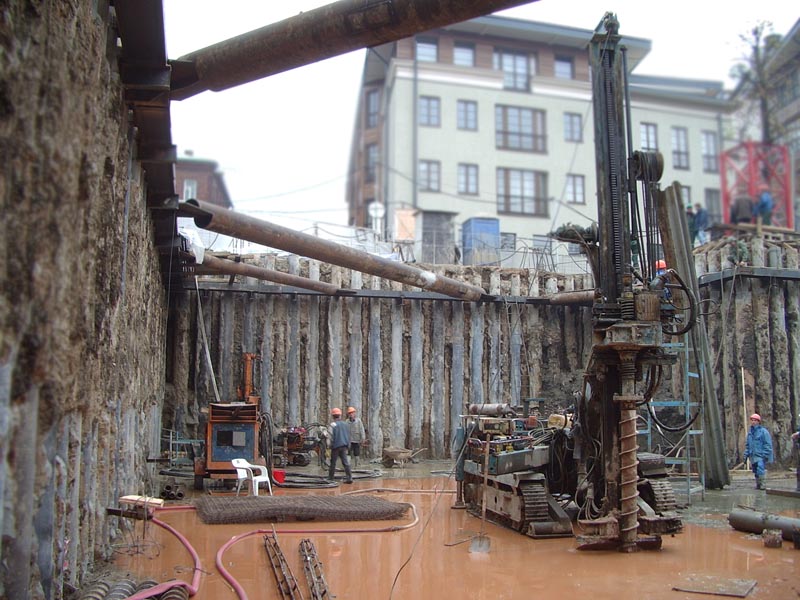 Этот метод позволяет развить высокую скорость выполнения работ при минимальном воздействии на окружающую застройку и позволяет создать «совершенный котлован», полностью непроницаемый для грунтовых вод.