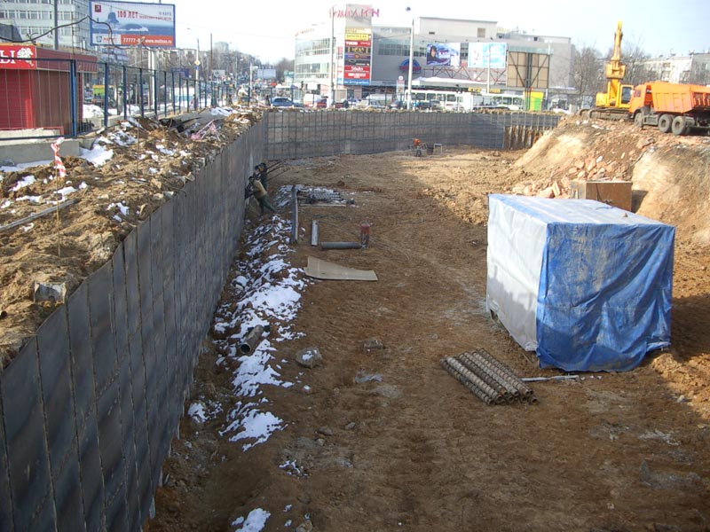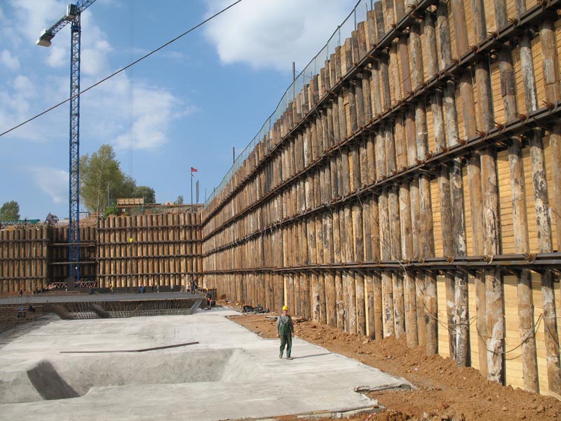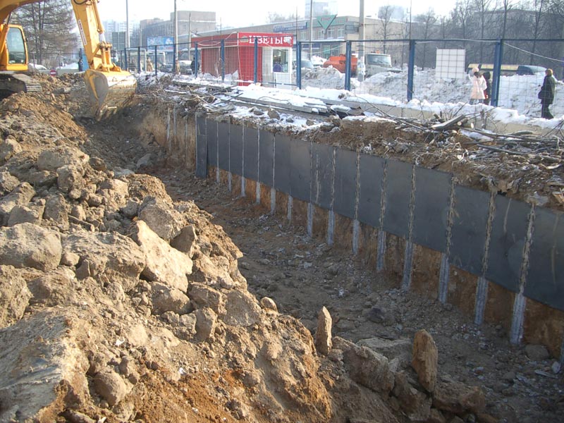 Фирма «Геотехника» выполняет ограждение и крепление котлованов методом «стена в грунте», а также шпунтовое ограждение стальными трубами или металлопрокатом различного профиля.
